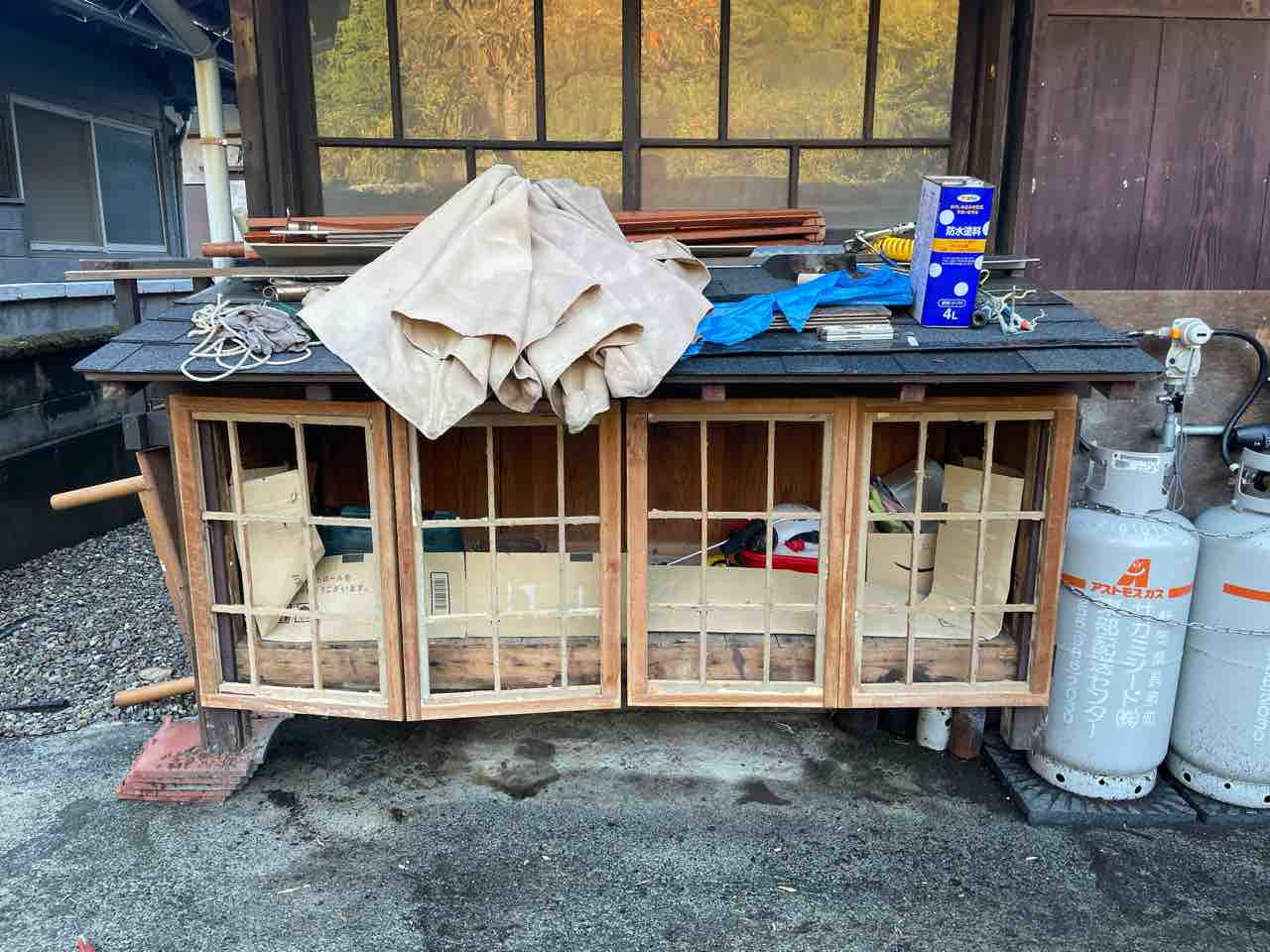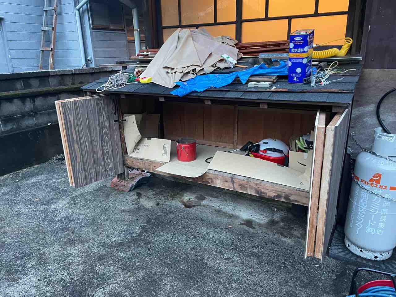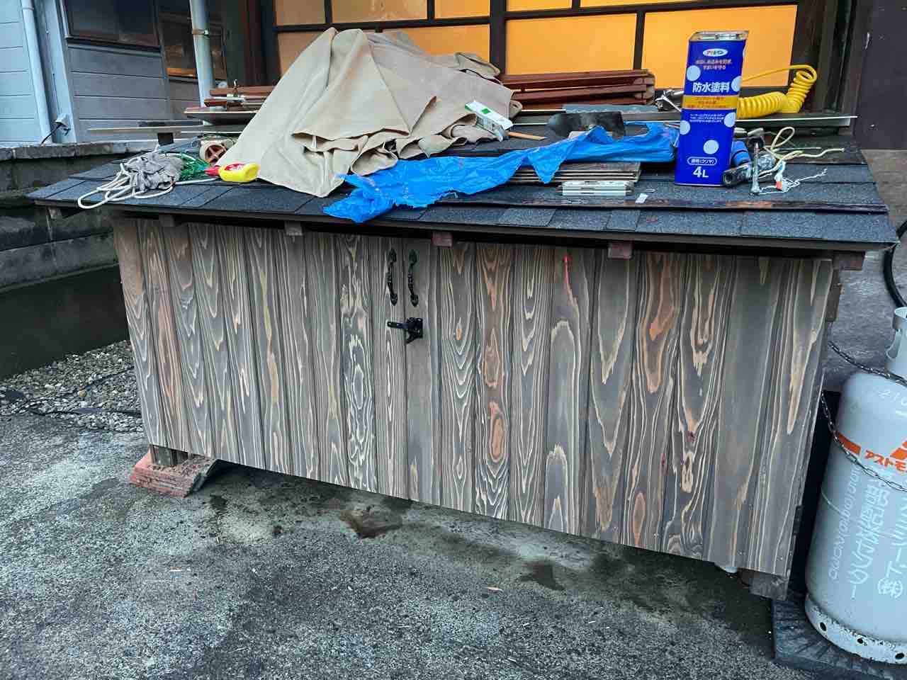 これで、バーベキュー用品などを屋内に持ち込まず収納できるようになりました。