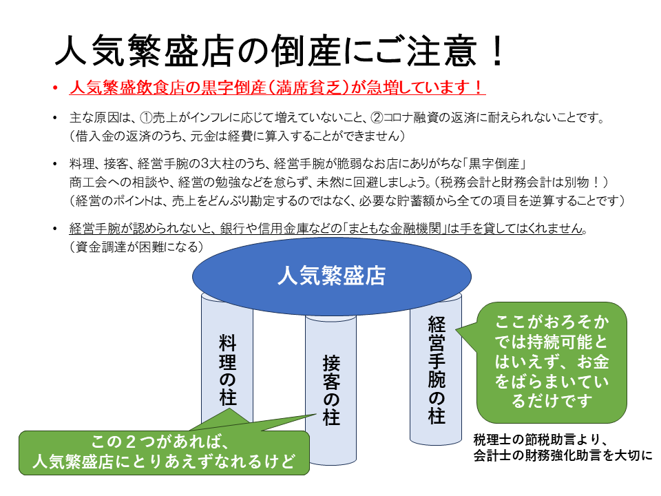 昨今、すごく繁盛していた店(特に飲食店)が急に潰れていた、なんて感じませんか?