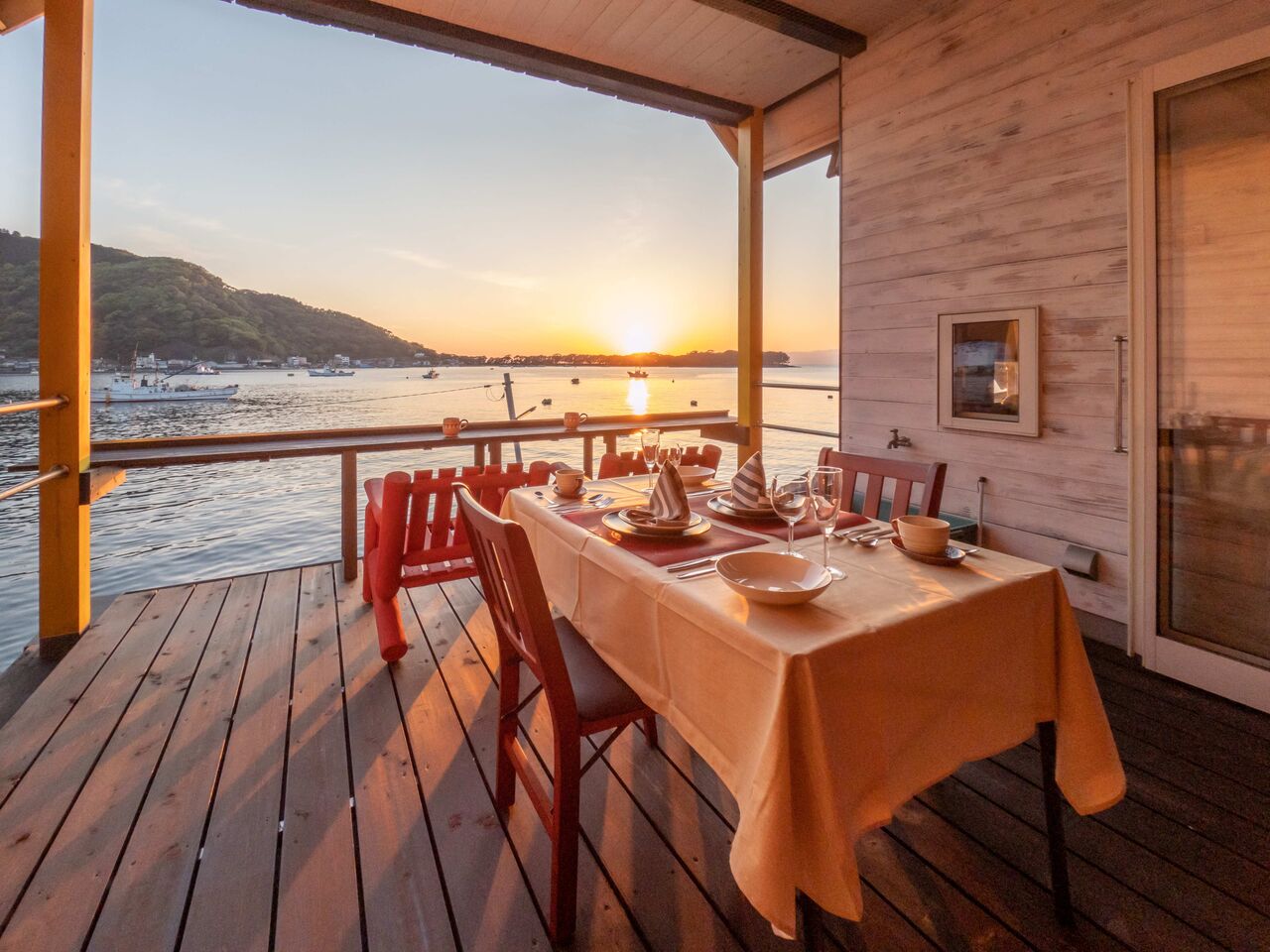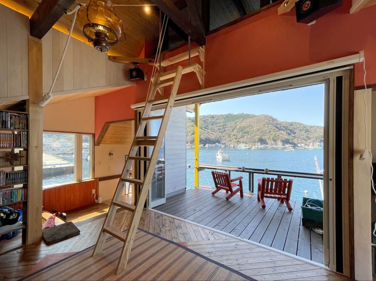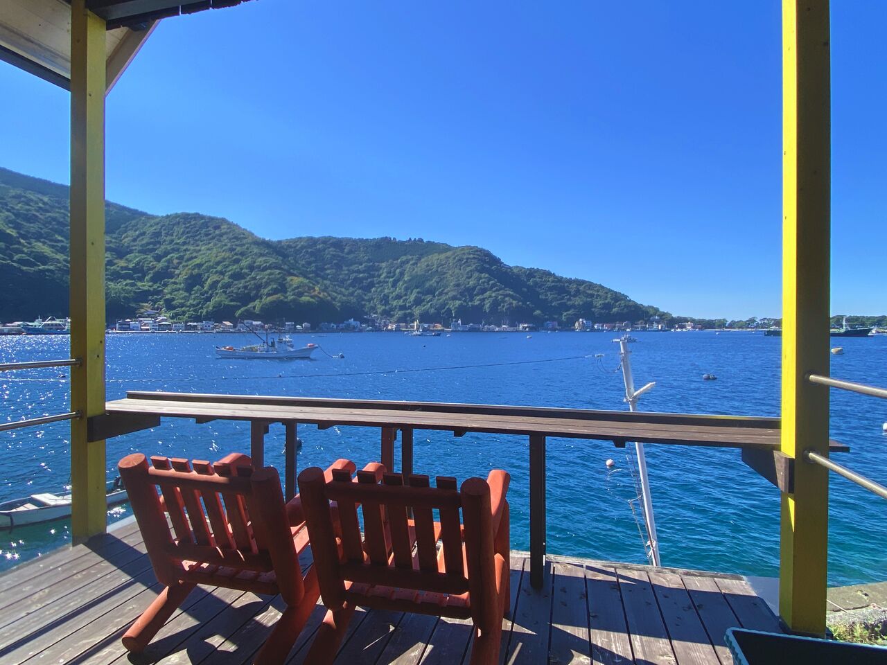 行き交う漁船の波音が部屋まで届く、戸田湾に180°面した海辺の特等席。