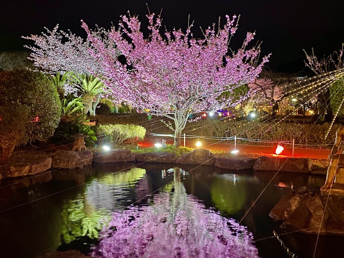 本土で一番早い春の到来。大川沿いを河津桜のピンク色が染め、菜の花との競演が始まります。