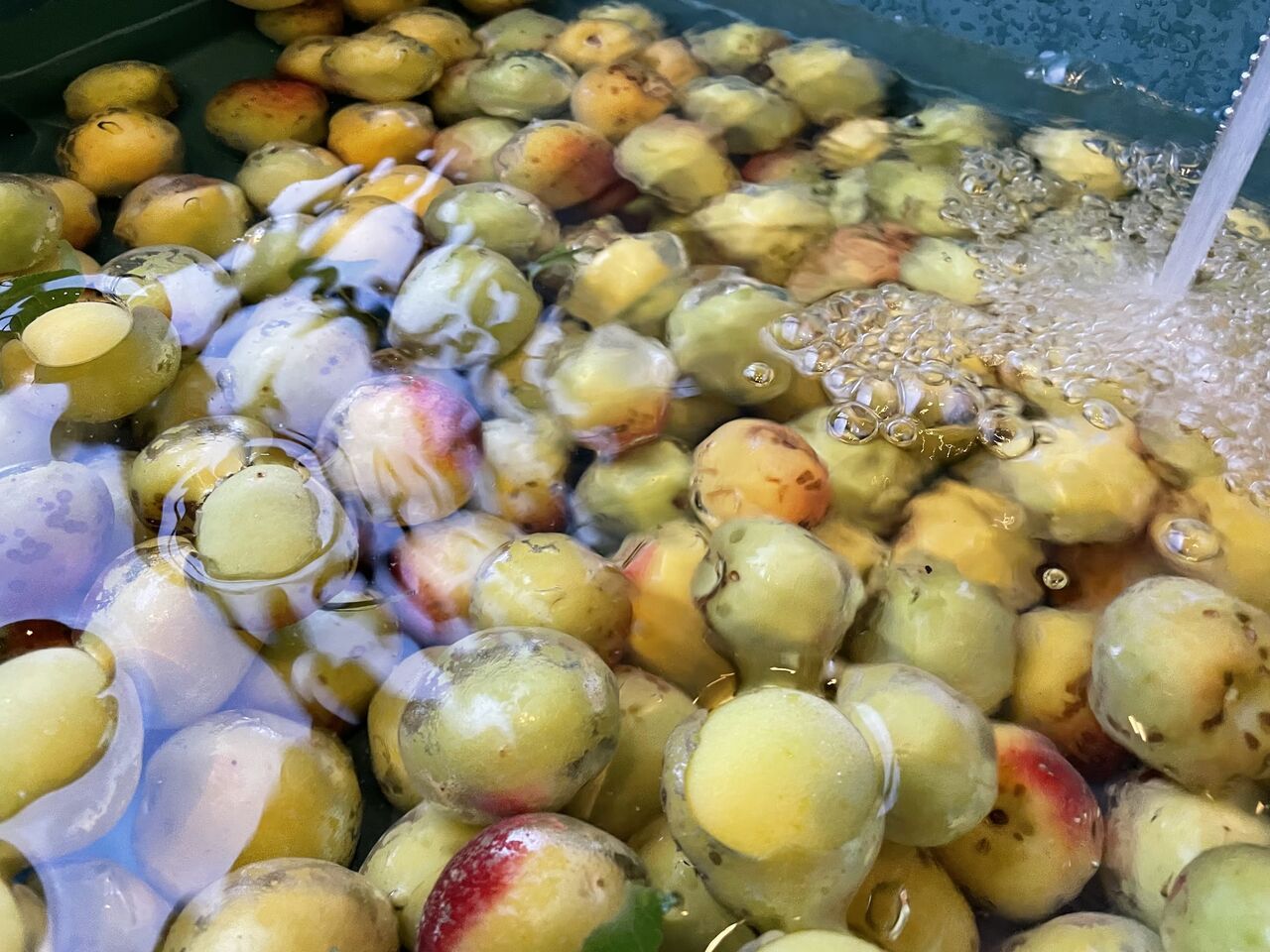 雨音さえもご馳走になる、沢海庵の庭。しっとりと濡れた緑と梅の実が、心を鎮めてくれます。