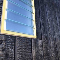 古民家再生 屋根の波板と、窓枠とか