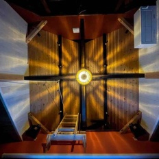 港の家 工房の壁と照明
